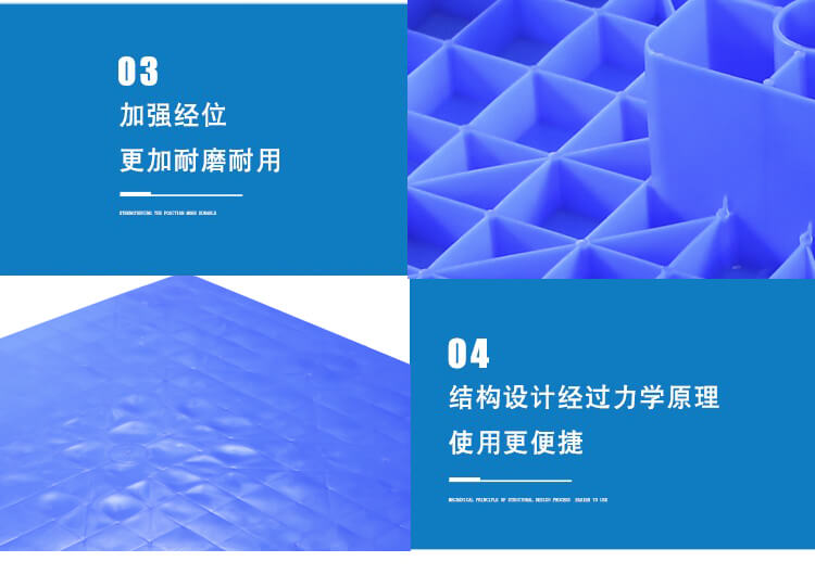 (1)、重量轻而且结实--以PP或HDPE为原料,添加着色剂及抗老化剂,采用注塑成型工艺一次成型。